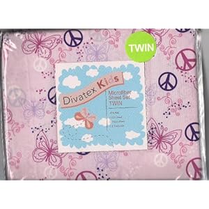 Divatex Twin Size Sheet Set Butterfly Peace Pink Sheetsl Description