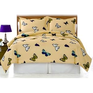Bright, background lemony - yellow with large, colorful butterfly on polyester microfiber. Make sure that you go out comforters size good for bed dormitory our Kiva is a micro fiber face 100% fabric polyester fiber and polyester back 100% complete this form is accessorized with a set of sheets, skirt, bed and valances.